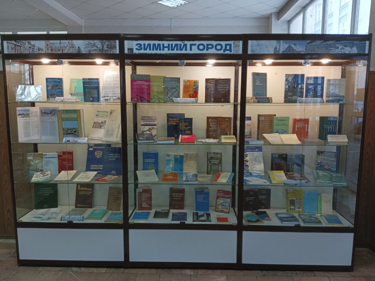 Книжная выставка «Зимний город» представлена в холле библиотеки ИРНИТУ.